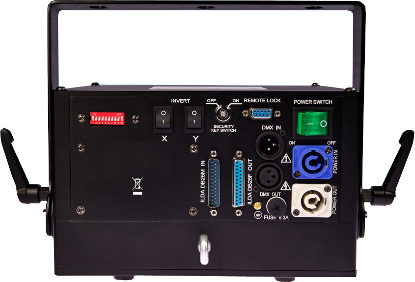Professional, precision graphics With ILDA-standard 30K graphics scanners, you can easily create sharp and stunningly bright graphics, logos, text and animated projections up to 100 feet tall.
