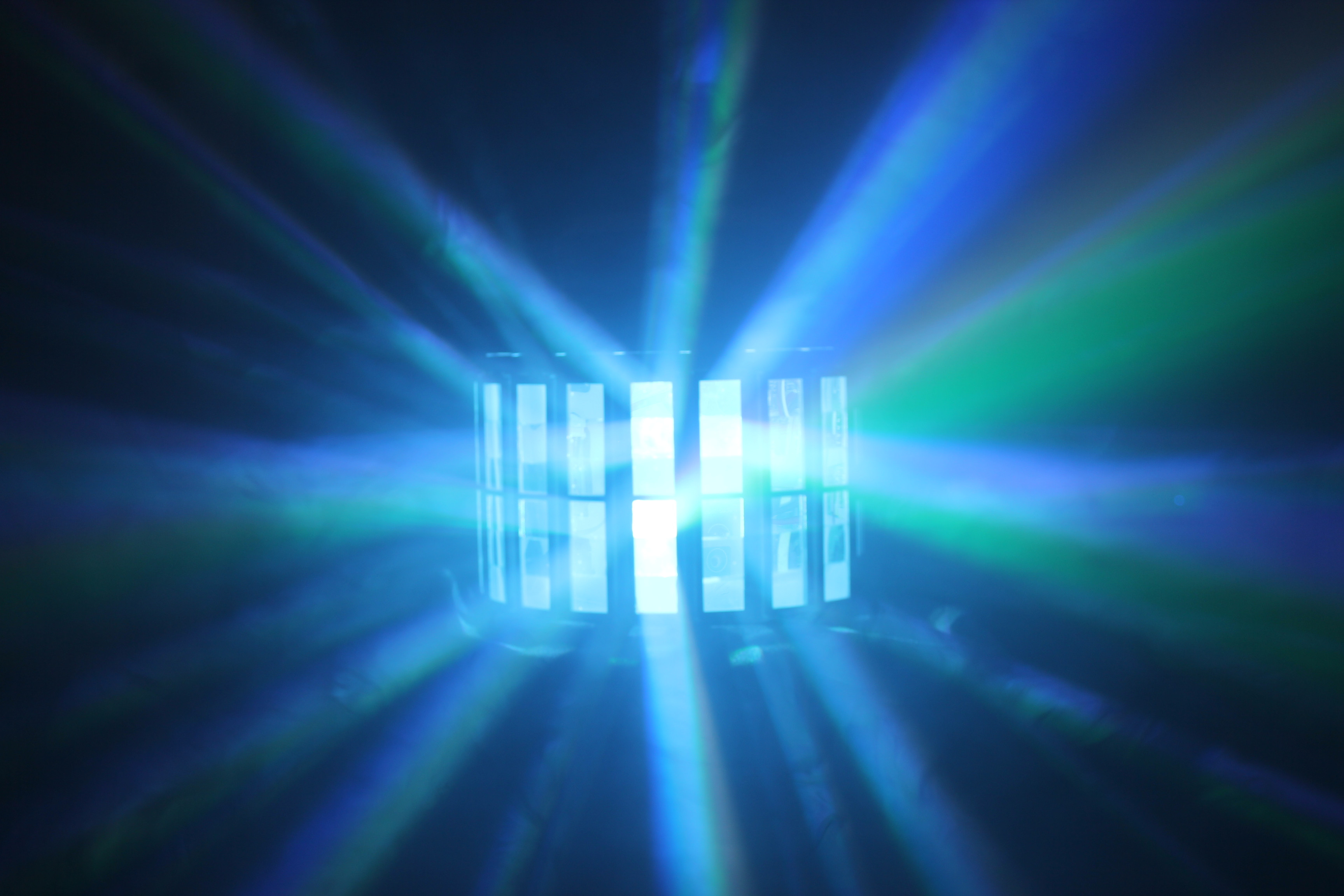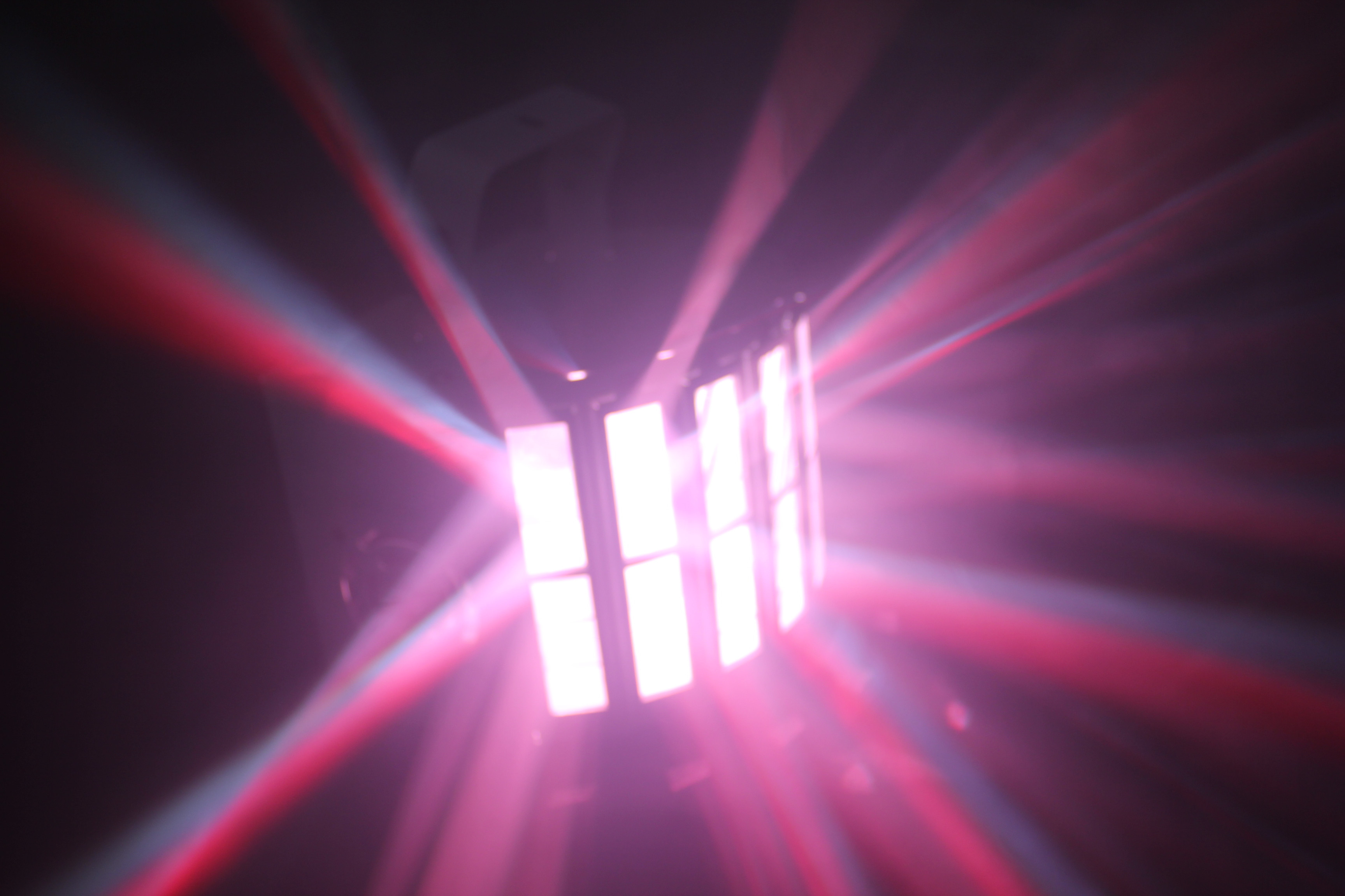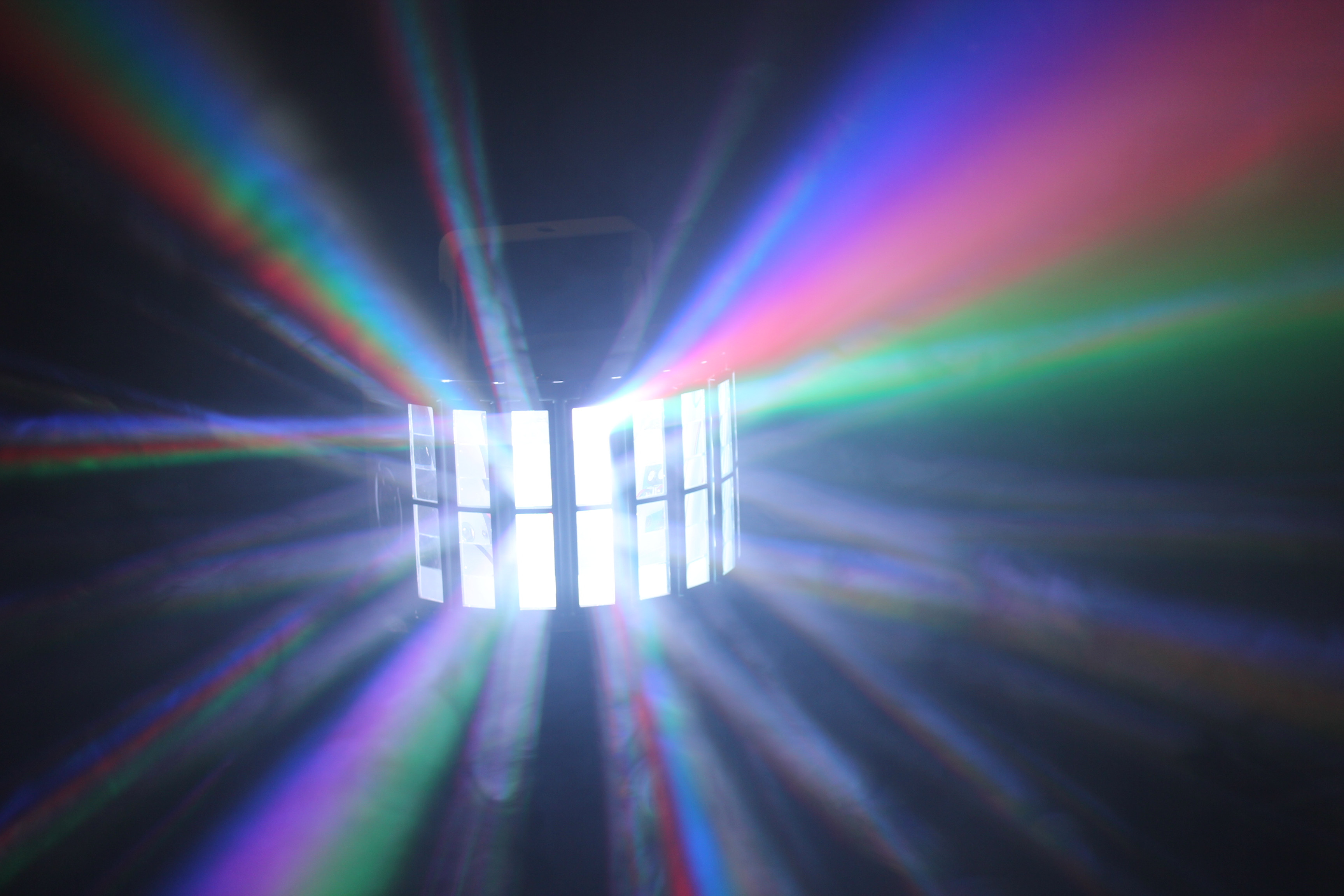 • Master/Slave linkable via XLR cable with 6-channel DMX-512 control and derby effect