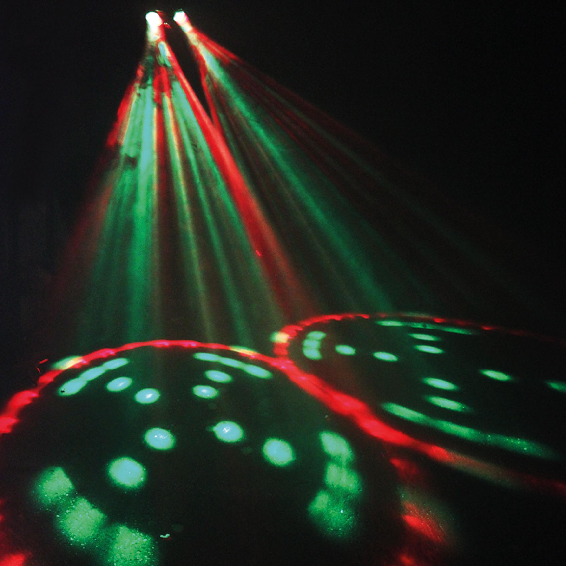 This beautiful looking LED light has 112 powerful LED's which has 32 red, 48 green, and 32 blue LED's to make great effects. Its LEDs are incredibly powerful and bright yet use very little power. The CHALLENGER features a long life bulb and a speed adjustment and it also responds to ambient sound with its built in Mic.