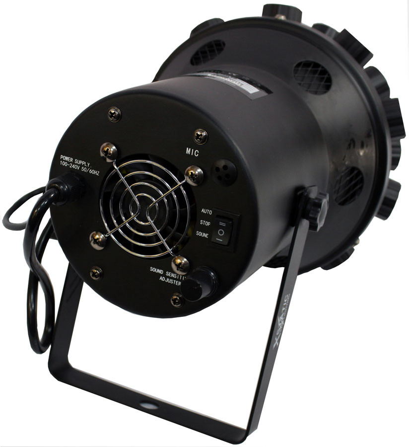 The Xstatic Pro Lighting Laguna X-782LED is compact lightweight uses very low power and is easy to install and operate. The motor rotates clockwise and counter-clockwise to create a spinning array of 138 degree angled beams in Red Blue Green Purple Cyan and White. Colors are made inside of the 4in1 LED with this new technology. The LEDs contain 4 color RGBA diodes for better color mixing. Runs cool and doesn't require duty-cycles.