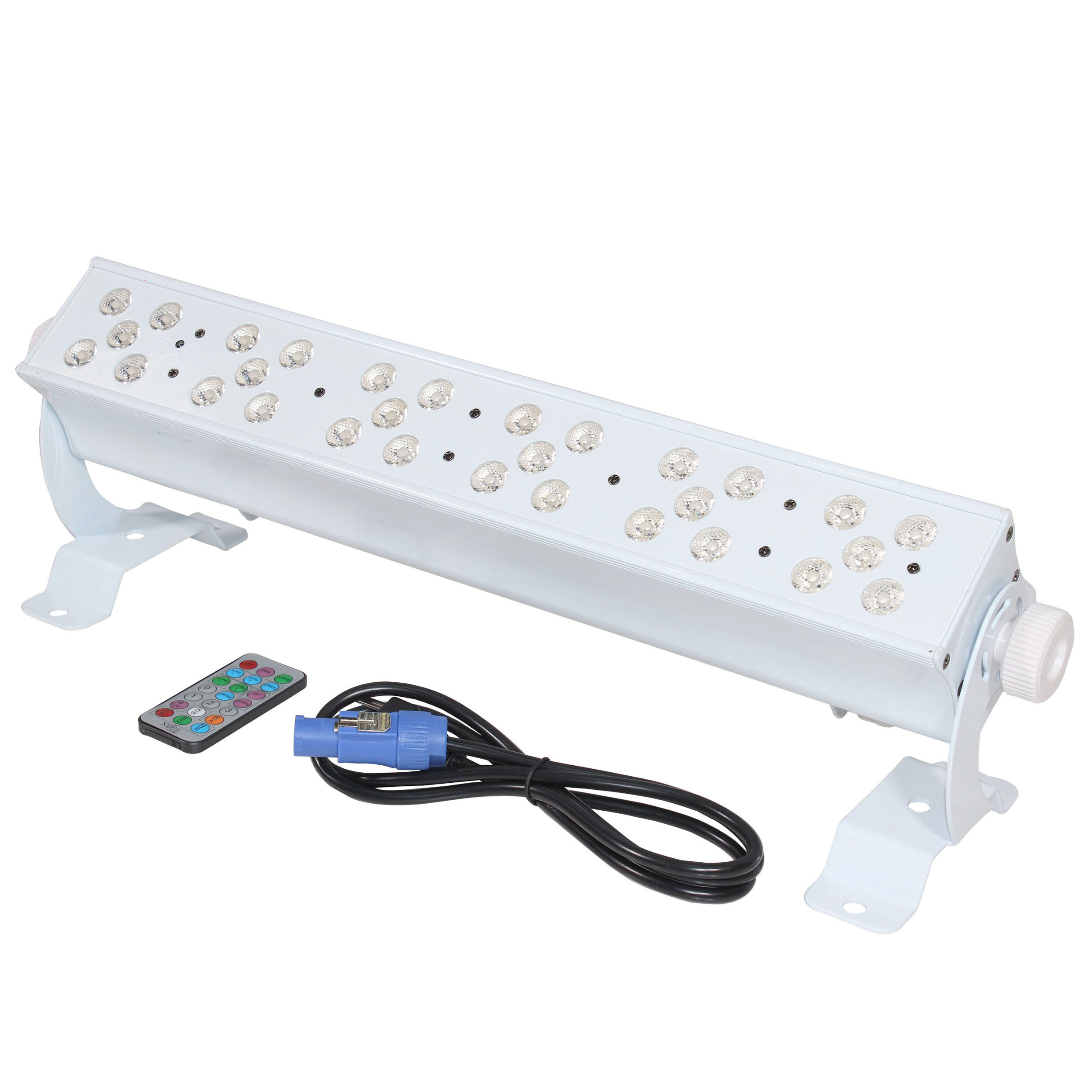 The ProX X-DAZZLER JR-W is a 1/2 meter/20" long Compact LED Bar Fixture with all-metal white housing that provides a wide, smooth wash of light that can give amazing color displays at a great value. Use It Anywhere, Anyplace, Anytime! Buildings, Facades, Signs, Column Lighting Statuary, Backlighting, Theatre, Nightclubs, Hotels, Restaurants and much more.